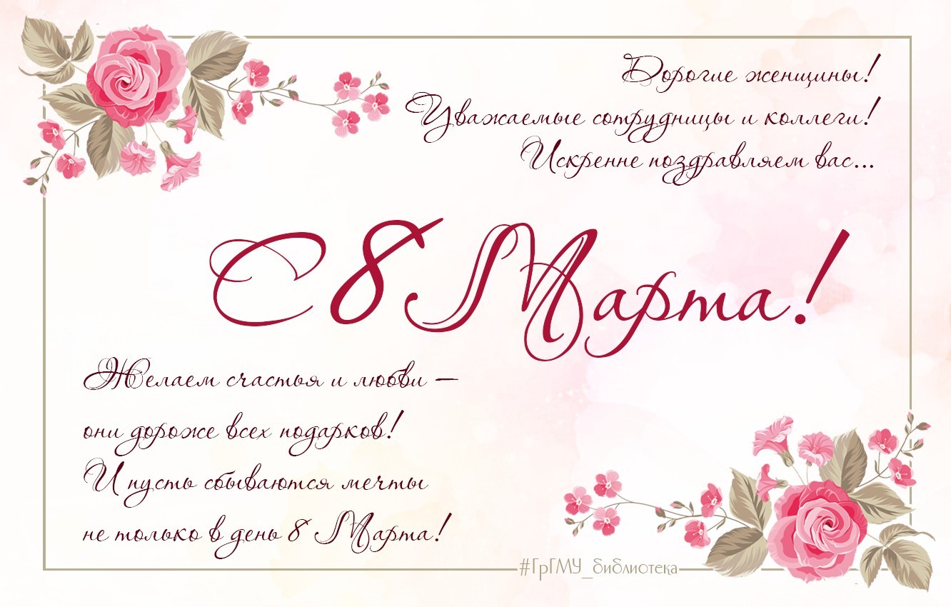 Дорогие и уважаемые сотрудницы и студентки нашего университета, коллеги и читательницы! От всей души поздравляем вас с Международным женским днем!