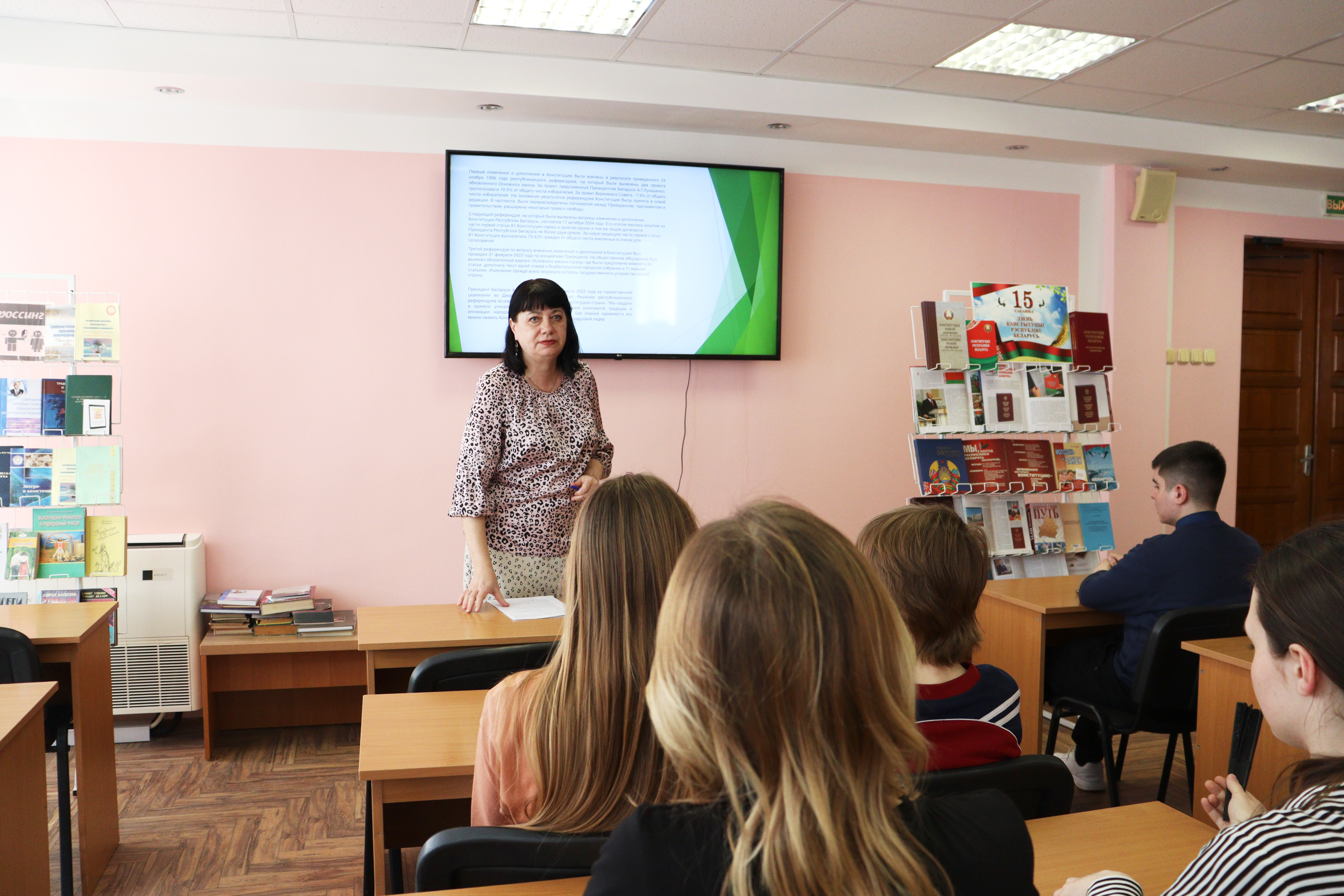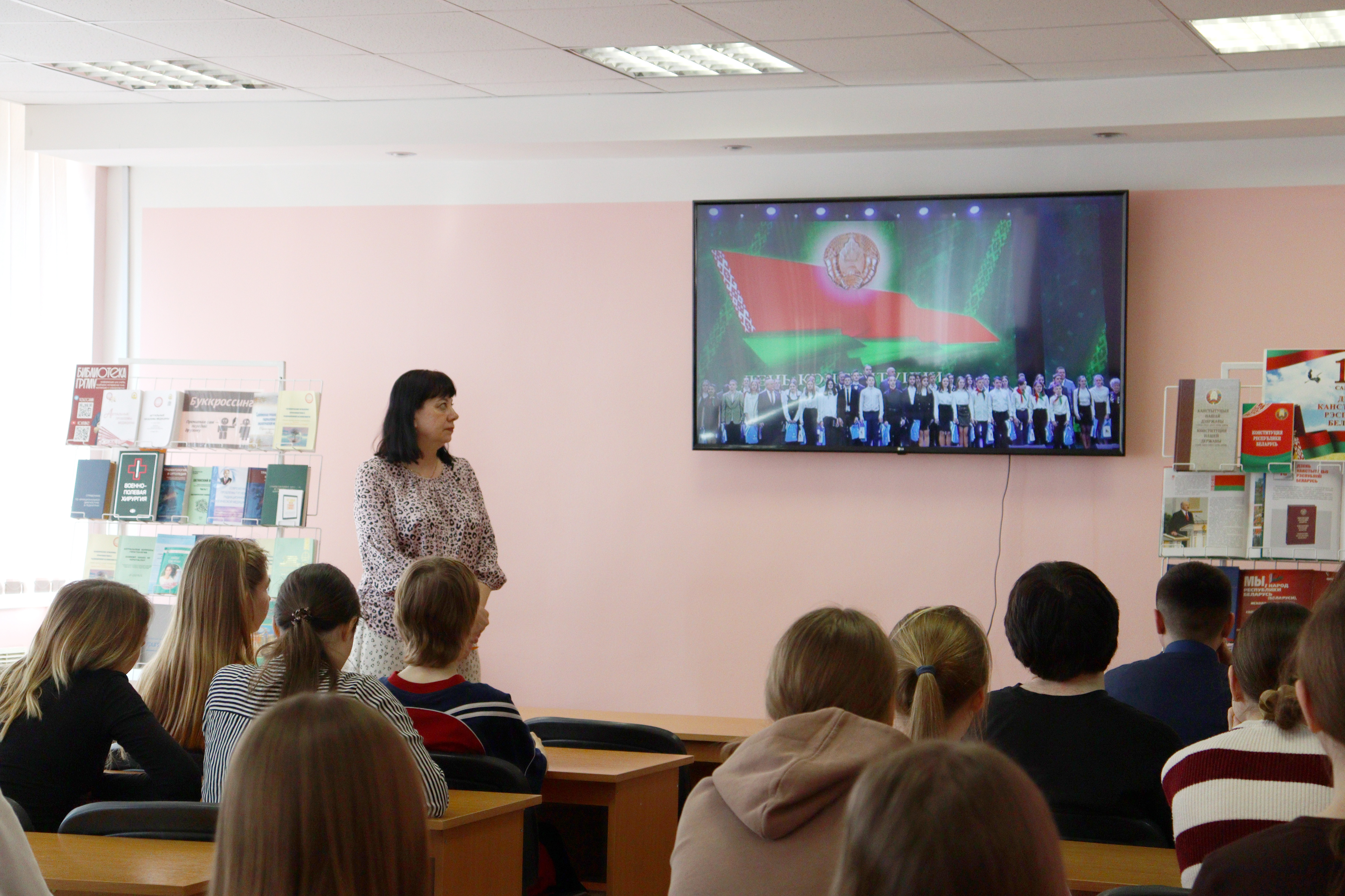 12.03.2026г. сотрудниками абонемента научной литературы был проведен круглый стол «Конституция Республики Беларусь – гарант нашей независимости». На мероприятии присутствовали студенты медико-диагностического факультета 1 и 2 курса, медико-психологического факультета 2 курса, лечебного факультета 5-го курса и педиатрического факультета 1 курса. Будущие врачи посмотрели видеоролик и презентацию, ознакомились с выставкой и ответили на вопросы викторины.