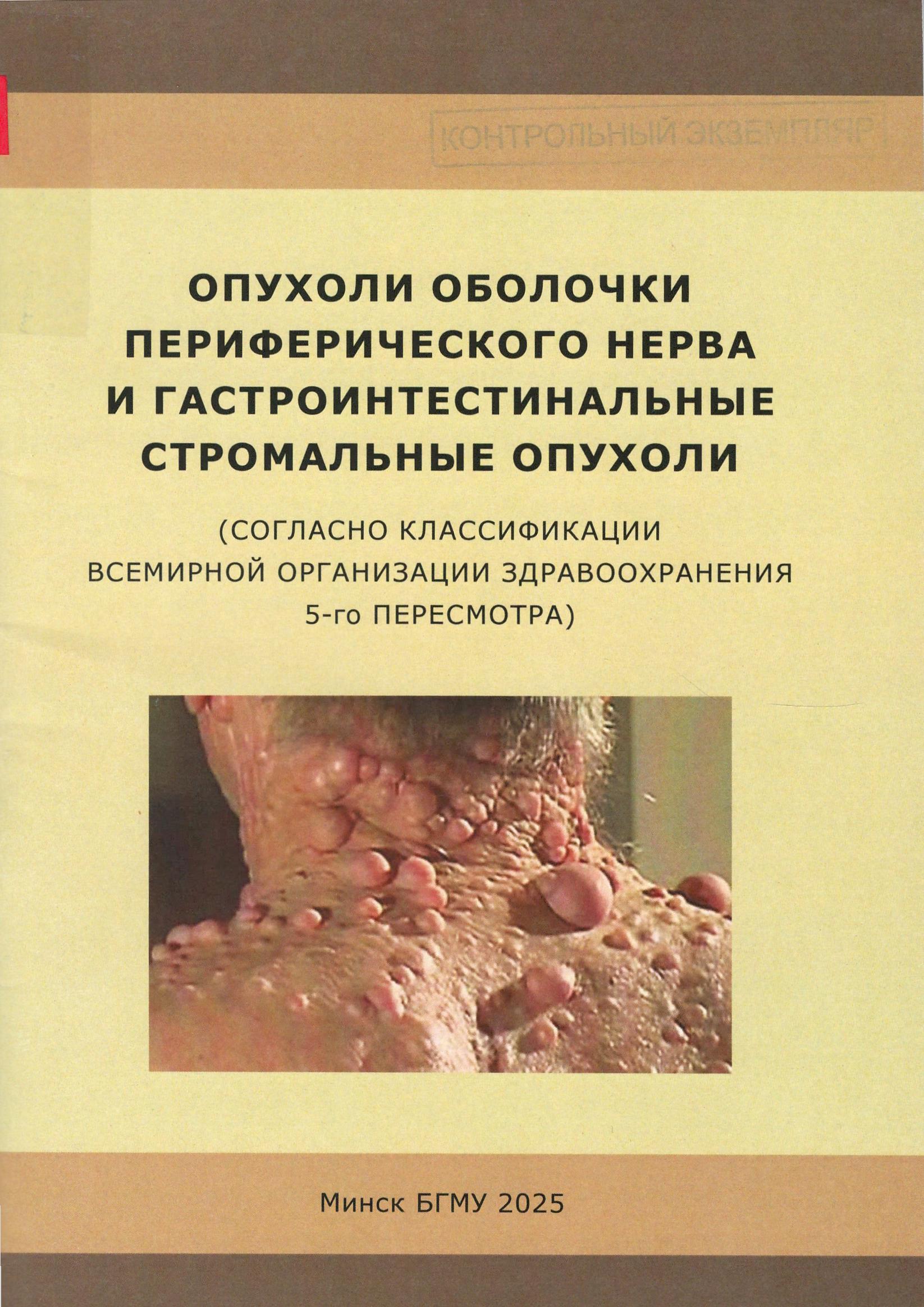 Опухоли оболочки периферического нерва и гастроинтестинальные стромальные опухоли (согласно классификации Всемирной организации здравоохранения 5-го пересмотра) : учебно-методическое пособие : рекомендовано учебно-методическим объединением в сфере дополнительного образования взрослых по направлению образования "Здравоохранение" / Ю. И. Рогов, Ю. В. Вертинская, И. А. Тищенко, И. В. Гринчик ; Министерство здравоохранения Республики Беларусь, Белорусский государственный медицинский университет, Кафедра патологической анатомии и судебной медицины с курсом повышения квалификации и переподготовки. – Минск : БГМУ, 2025. – 76, [2] с. : табл., цв. рис. – ISBN 978-985-21-2067-8.